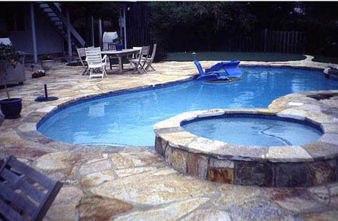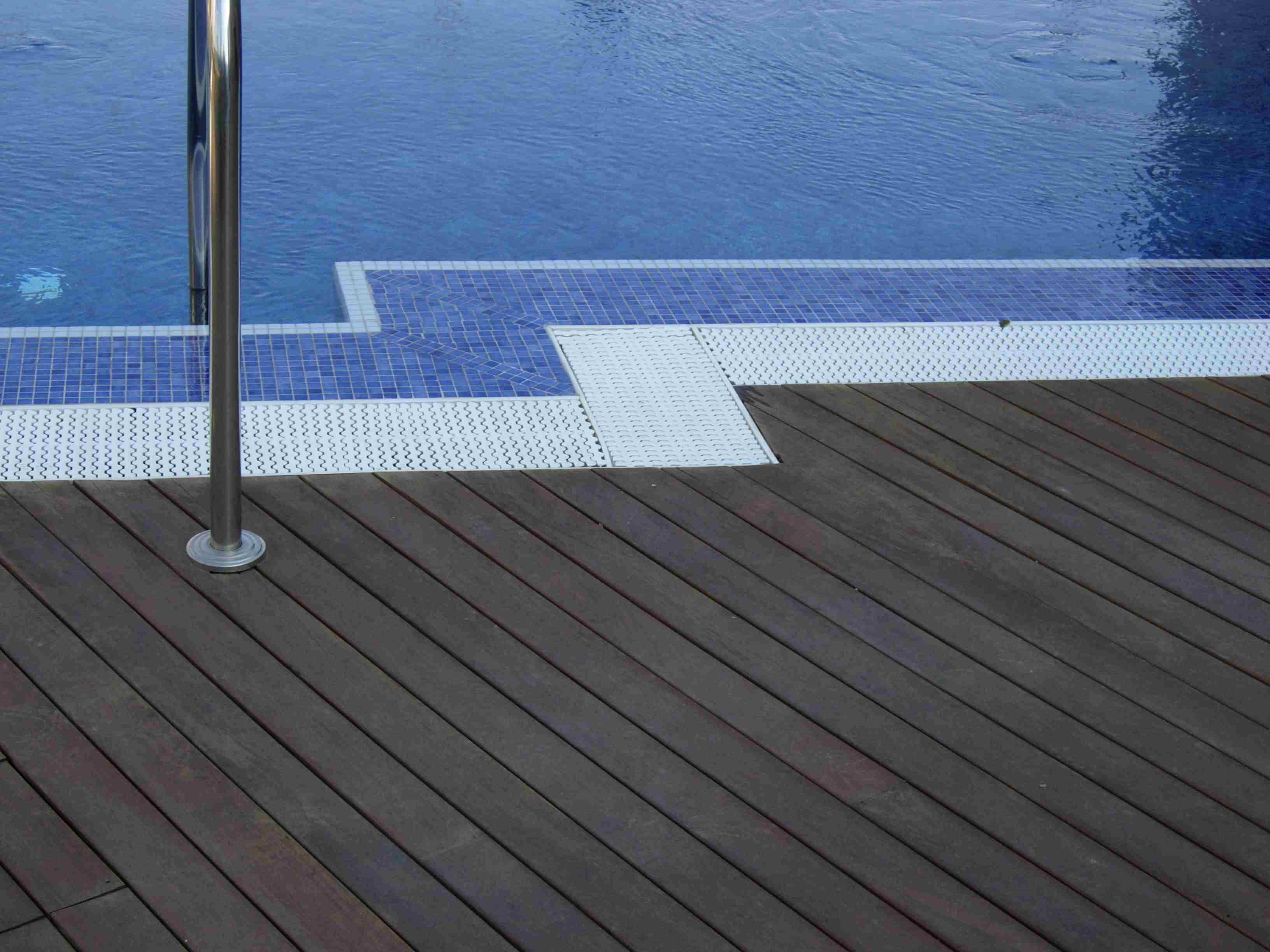 La piscina tradicional suele ser diseñada con líneas rectas,(cuadradas, rectangulares) con profundidad creciente de menor a mayor, su revestimiento interior realizado con azulejo o gresite y exterior con piedra artificial ( material muy poroso que evita el calentamiento del paramento) o losa de barro. La entrada y salida de la misma se hace por escaleras bien de acero o realizadas con peldaños de obra.