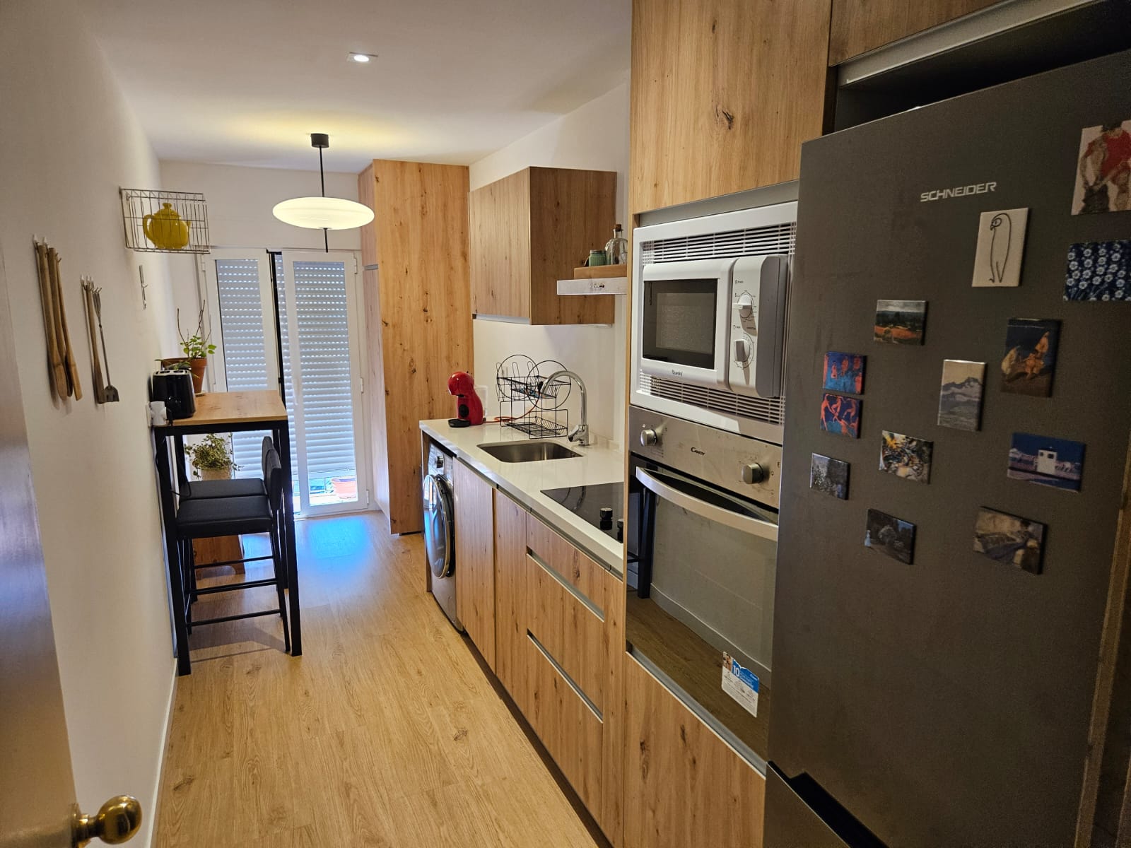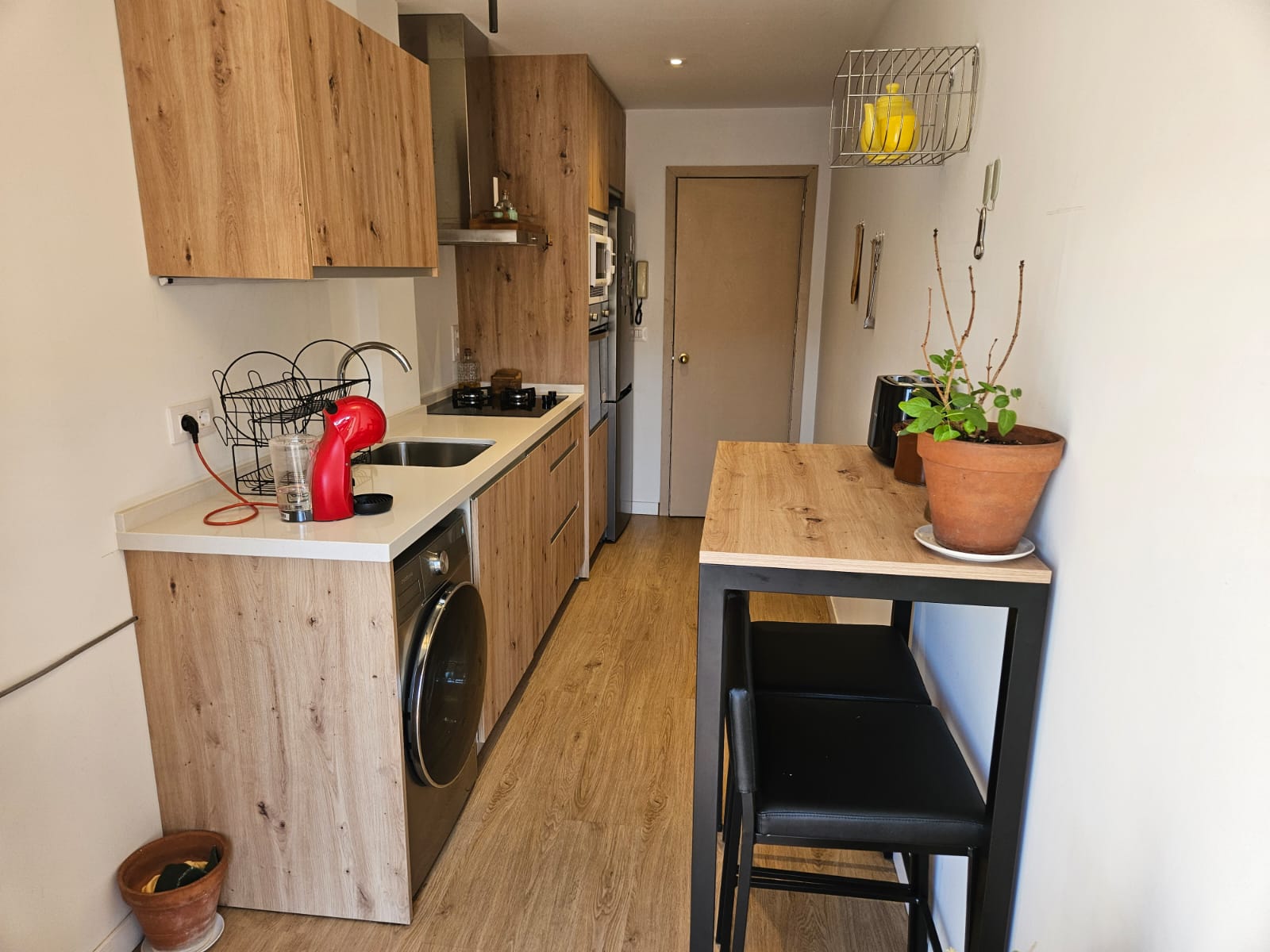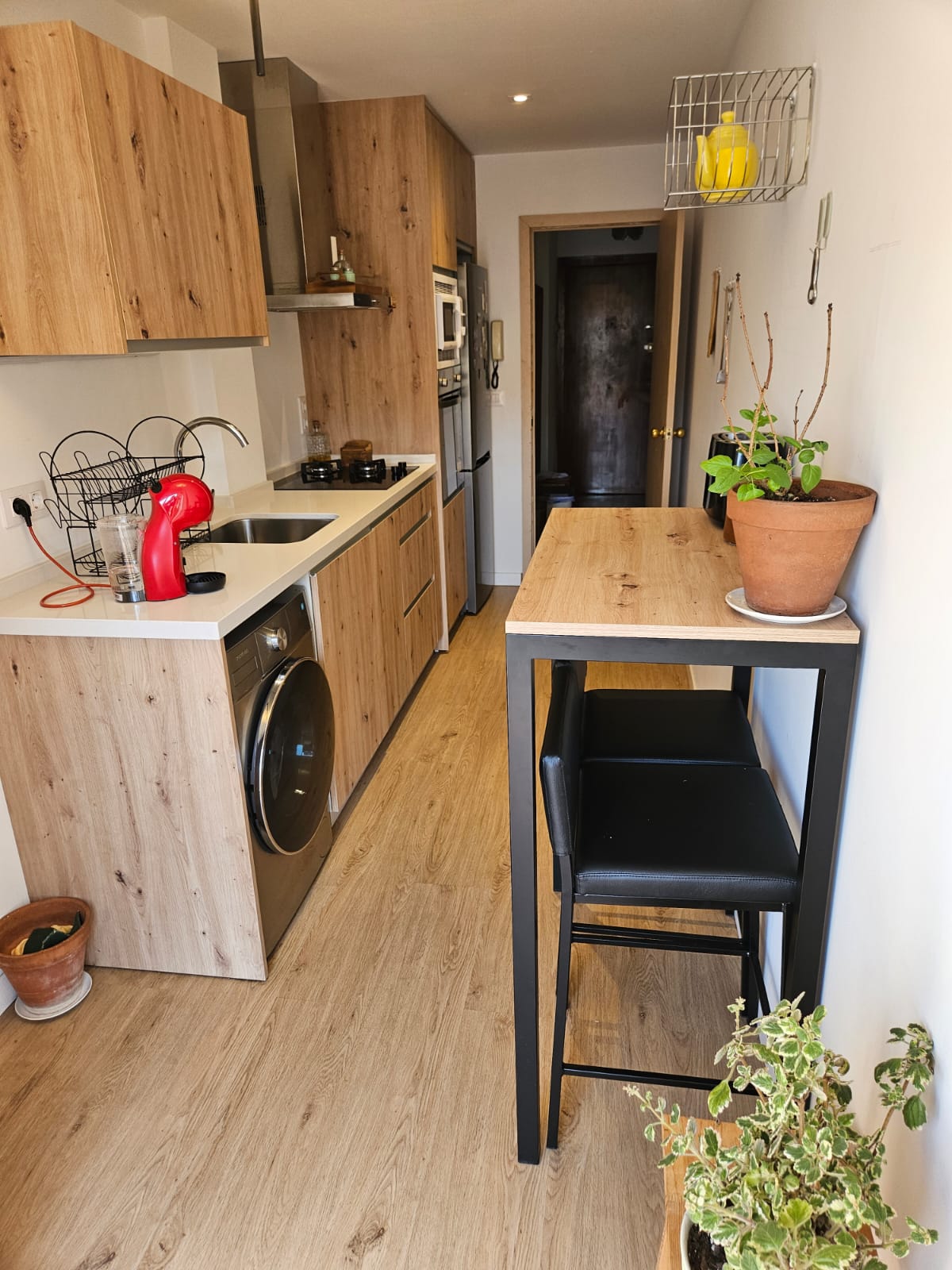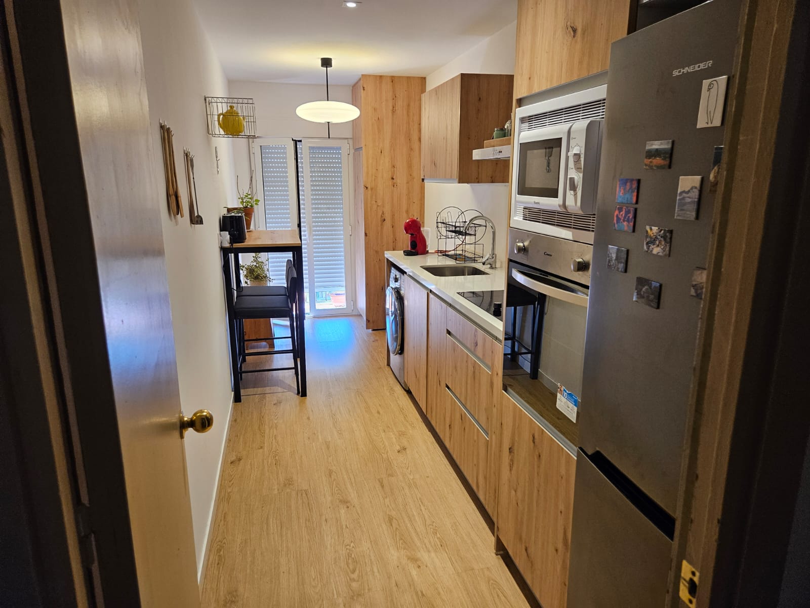 Esta reforma demuestra cómo una cocina pequeña puede ser tanto funcional como estéticamente agradable, creando un espacio acogedor y moderno que se adapta perfectamente al estilo de vida.