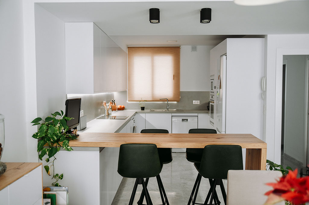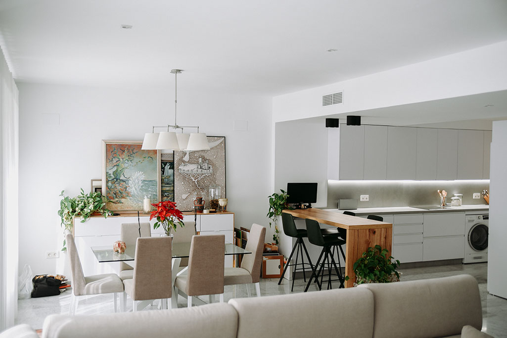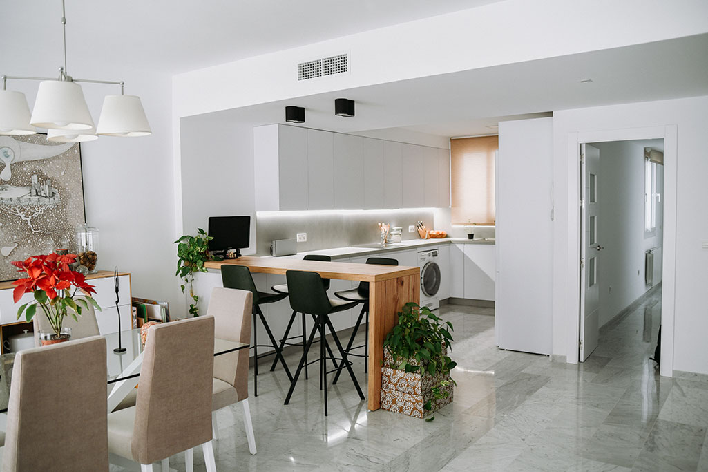 • Mejor ventilación de ambas partes de la casa. Al unir la cocina al salón conseguimos un espacio único con ventilación.